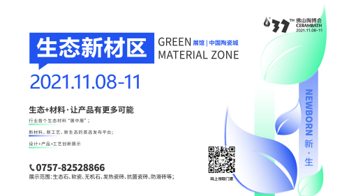 新生為主題,打造行業首個生態新材區,東鵬巖板、金鵬生態新材、陶小象、絲曼巖板等企業將展示生態石、軟瓷、無機石、發熱瓷磚、防滑磚、防菌瓷磚、巖板等綠色生態新材,探索新材產品設計與工藝創新的融合。