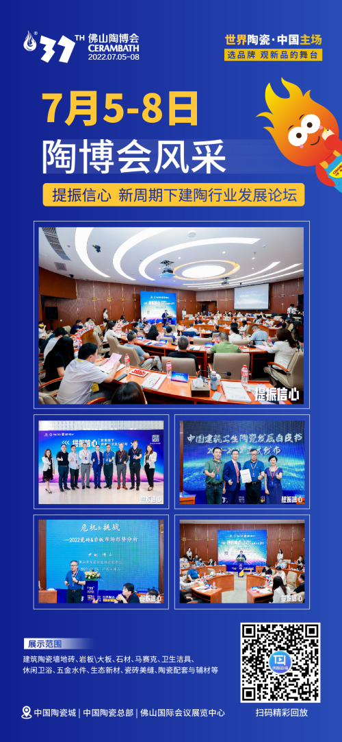 佛山陶博會是佛山陶瓷文化和商貿交易的重要平臺,也是我們促發展穩增長的重大舉措,這屆是第37屆,已經走過了20年的崢嶸歲月。36屆的辛勤耕耘,陶博會見證了時代的變遷,見證了科技的變革,也見證了佛山這座城市的變化。世界陶瓷·中國主場,是這一屆陶博會的主題,在疫情的陰霾還沒有完全消散的新形勢下,中國建材陶瓷產業界的新老朋友們,能夠克服重重困難,再度相約南國陶都,共襄陶博盛典,機會尤其來之不易,機緣必加值得珍惜,機遇更加不容錯過。2022年下半年才剛剛開始,可以說陶博會開了一個好頭,我們有足夠的時間、足夠的空間、足夠的潛力和足夠的信心在下半年扳回一城,順勢逆轉、反超,最終順利實現全年的穩增長目標,衷心地希望各家協會、商會和企業界的朋友,珍惜這次難得的機會,同心同向、同頻共振,深入交往,深入交流,做成交易,于危機中遇新機,在變局中開新局,在共同面對中取長補短,交融互鑒,共謀發展之道,希望佛山陶博會一屆一屆地辦下去,一屆更比一屆好!