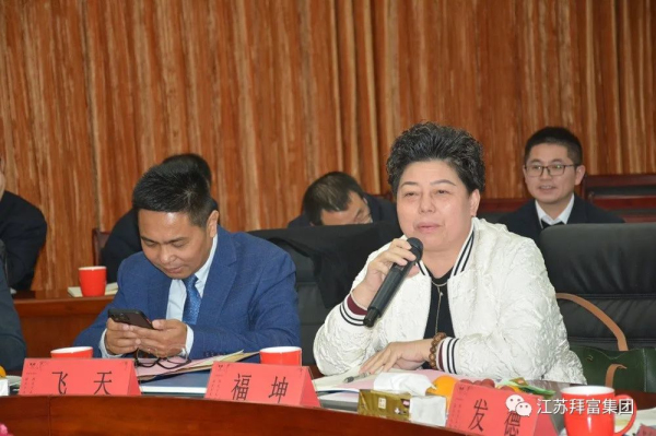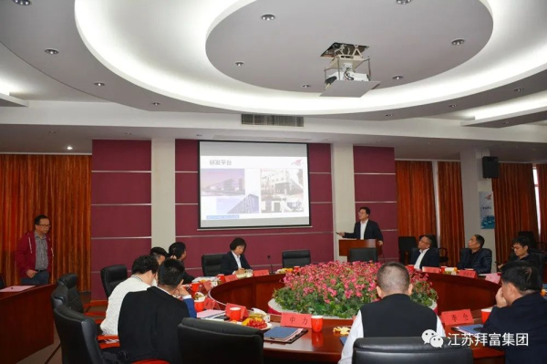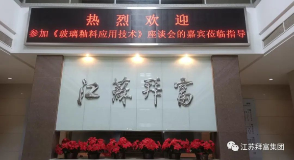 2023年11月11日,由拜富集團舉辦的《玻璃釉料應用技術》座談活動在江蘇宜興拜富科技園召開。來自福萊特、旗濱、耀皮、飛天、中力、銀泰豐、銀升、福坤、發德、明陽等周邊玻璃深加工企業的嘉賓共聚拜富,與公司研發、銷售部門等相關負責人,共計30余人一起參加了本次活動。此次活動,旨在加深玻璃深加工行業上下游的交流合作,降低玻璃產品成本,提高產品性能。活動由拜富科技常務副總經理李萬景主持,拜富集團董事長王美蘭出席會議并作歡迎致辭。
