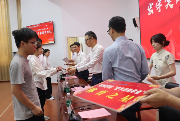 校企領(lǐng)導(dǎo)頒發(fā)“宏宇獎(jiǎng)助學(xué)金”